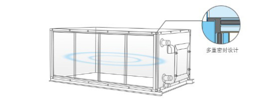 采用優(yōu)質(zhì)的PU橡膠斷冷橋,完全隔絕金屬接觸,防止金屬面板和鋁合金邊框形成冷橋; 采用優(yōu)質(zhì)PU密封海綿,使機(jī)組內(nèi)空氣完全密封,避免機(jī)組由表面結(jié)露; 整機(jī)箱體的防冷橋系數(shù)滿足歐洲空氣處理機(jī)組標(biāo)準(zhǔn)EN1886的TB2級(jí)要求,防凝露效果出色,氣密性好。